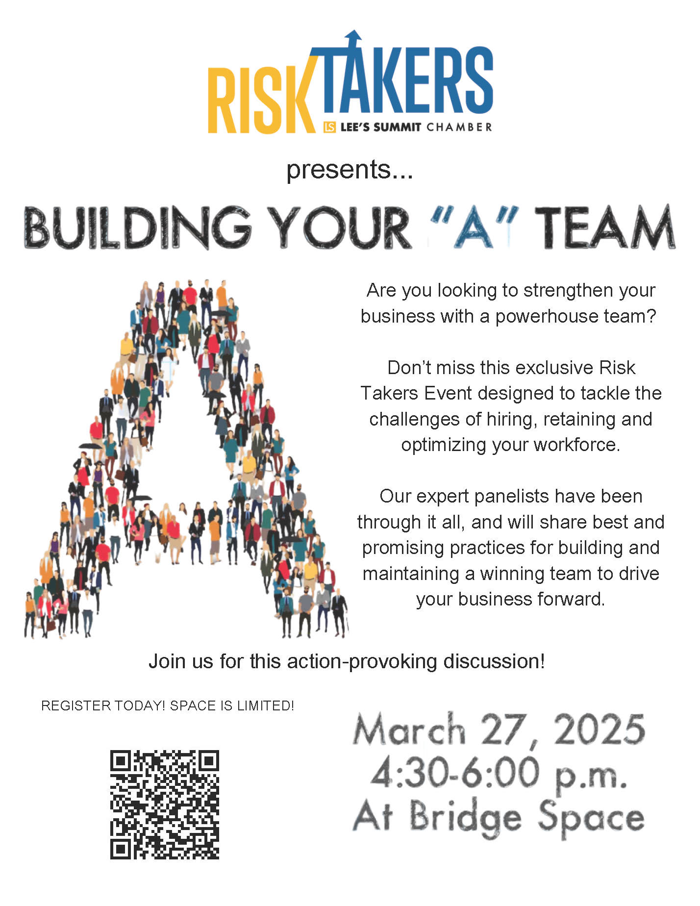 So join us on March 27th, 2025 from 4:30-6pm at Bridge Space to move your entrepreneurial business forward by Building Your “A” Team!